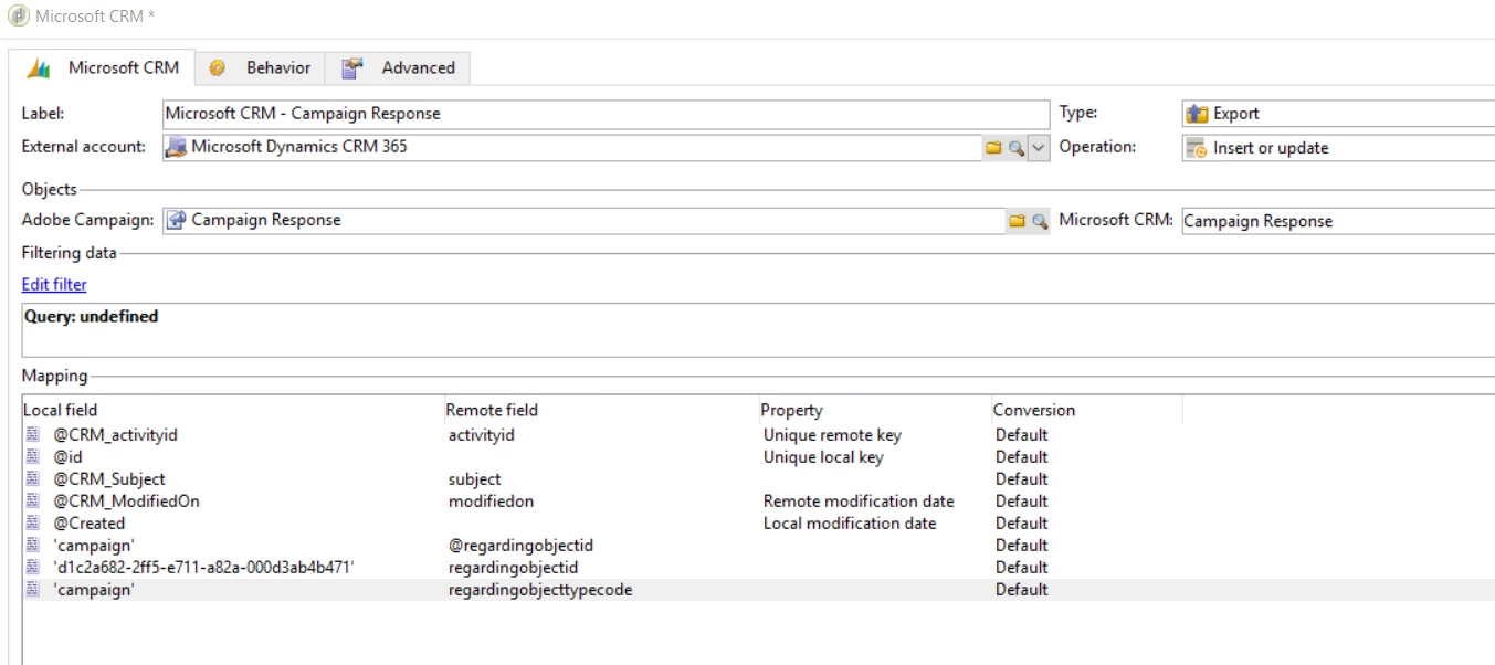 And when I use the Specific Dynamics connector (this is based on a simple synchronization: import responses from CRM to campaign via connector, update subject and local change dates and synchronyze these changes back to CRM):