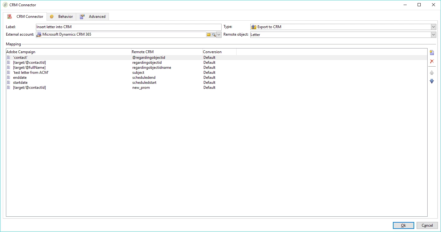 External account is configured and I am able to synchronize entities from CRM to Adobe campaign.
