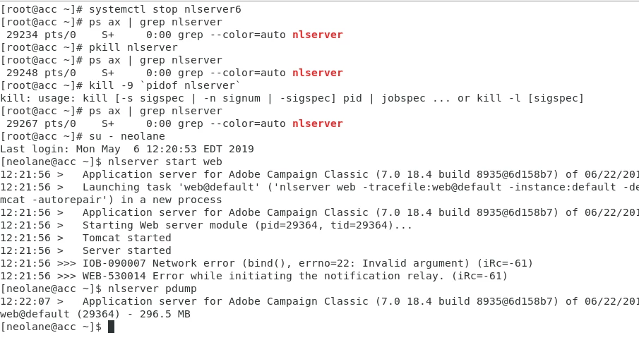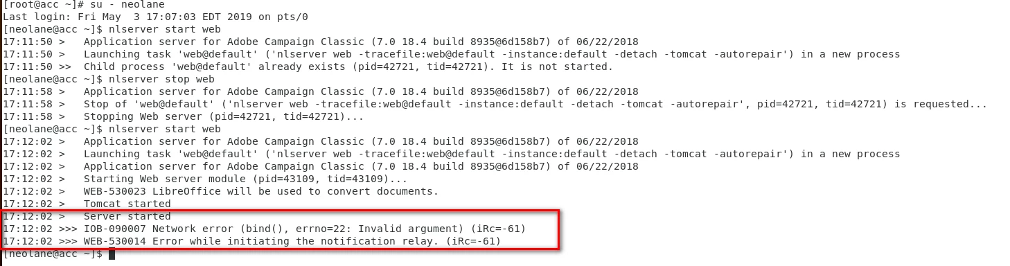 Can someone help in below issue. I have configured Adobe Campaign V7 on CentOS7 and trying to start the web module.