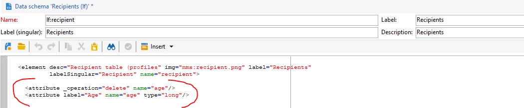 Hello, we are considering changing the @6761651 field in the Recipient table since we noticed that today we are using this expression in the Recipients (nms) data schema XML-code: