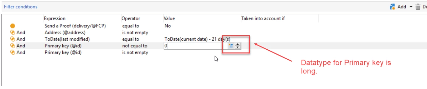 I've also placed a condition to to fetch PK that 'is not empty.'