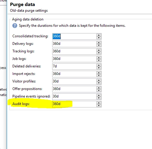 In the deployment wizard we have an option for storing audit logs for 360days :