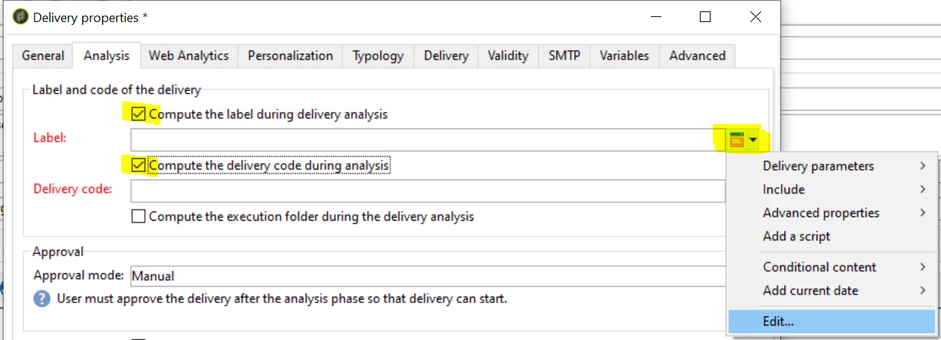 I though I could compute the Delivery code with the variable X, that I could then use to exclude the recipient in my workflow.