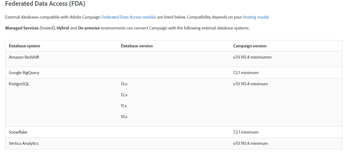 Connecting Adobe Campaign hosted With External Database