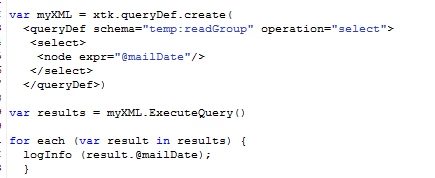 I created a Javascript where I ran a xtk.QueryDef and pulled in a "Date" object.