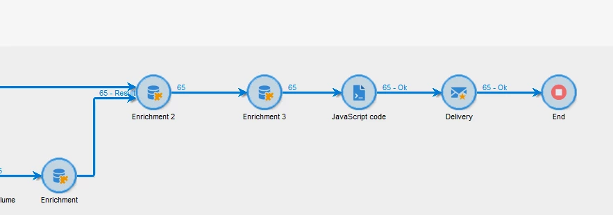 I built a workflow fetching data about some recurring campaigns (campaign name, delivery name, contact date, success rate, last contact date with volume). The query is made on the 'Deliveries' dimension.