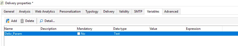The content of the delivery is very simple, it is simply a title and a call for the <%vars.content%> variable.