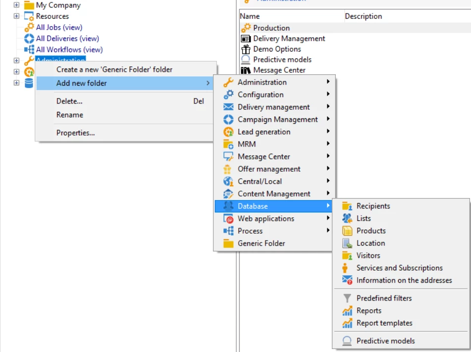Please let me how can I create new sub folder inside database menu just like Recioients, Products,..