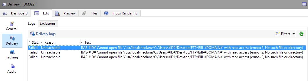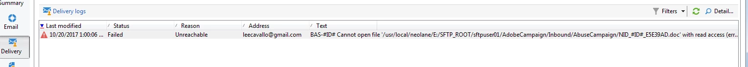 We are trying to attach a pdf file (from the folder placed on C:// drive for testing because, FTP is not supported) during the email delivery in the template.
