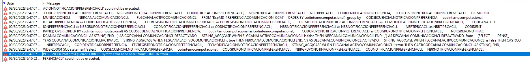 I need to get all data from: 'abc:MD_PREFERENCIACOMUNICACION_CCM' , transform it using SQL and insert that in: abc:MD_PREFERENCIACOMUNICACION_CCM_FIX. But I'm getting the error message above.