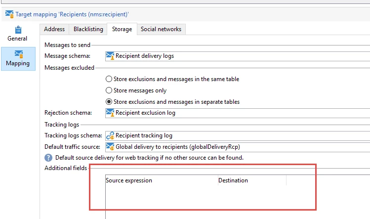 Delivery attribute stored in ootb nms:recipient target mapping