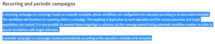 I have read the explanation before asking the question and to be honest I don't see a huge difference. In summary, the recurring campaign is based on a specific template configured to an scheduler, and a periodic campaign is based on a template configured to an execution schedule. For my perspective, the information is the same. Although I can see the periodic is set up automatically and the recurring campaign could or not could be set up automatically.
