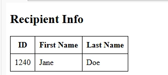 I'm working on a web application where I need to display recipient details in a table.