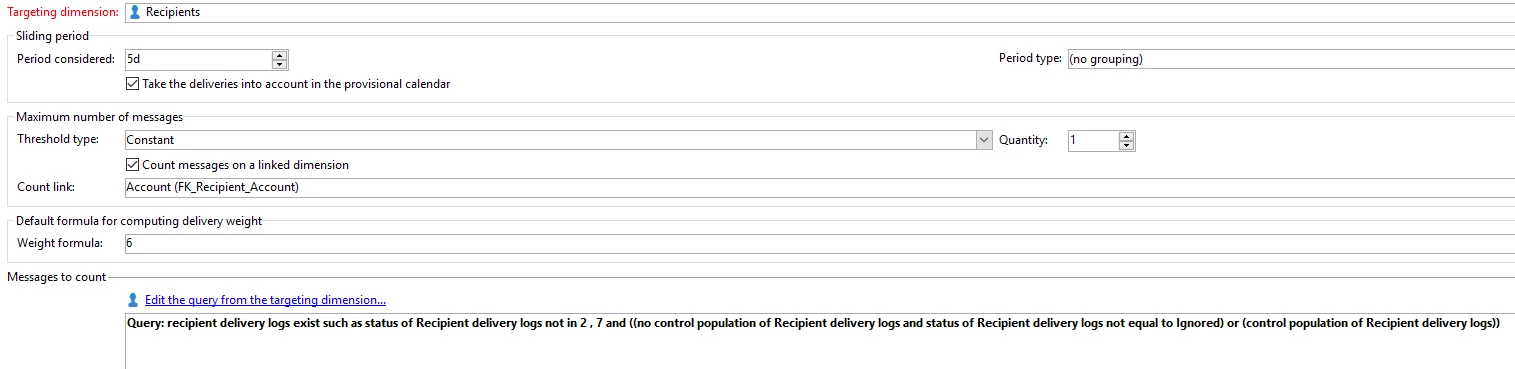 there is an issue with an email pressure rule which takes to long to execute. Interesting thing is that takes around ~1,5 hour for 10.000 customers and also 1.5 hour for only 3 customers. There is no locks on DB or similar things. Below is the configuration, it just takes too long. Optimizing SQL query does not help.