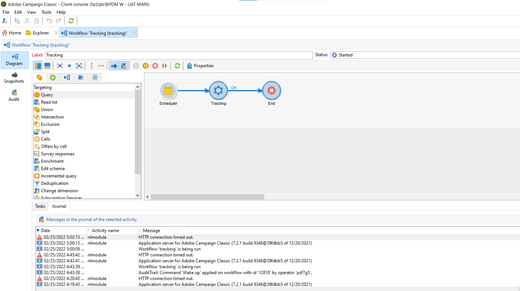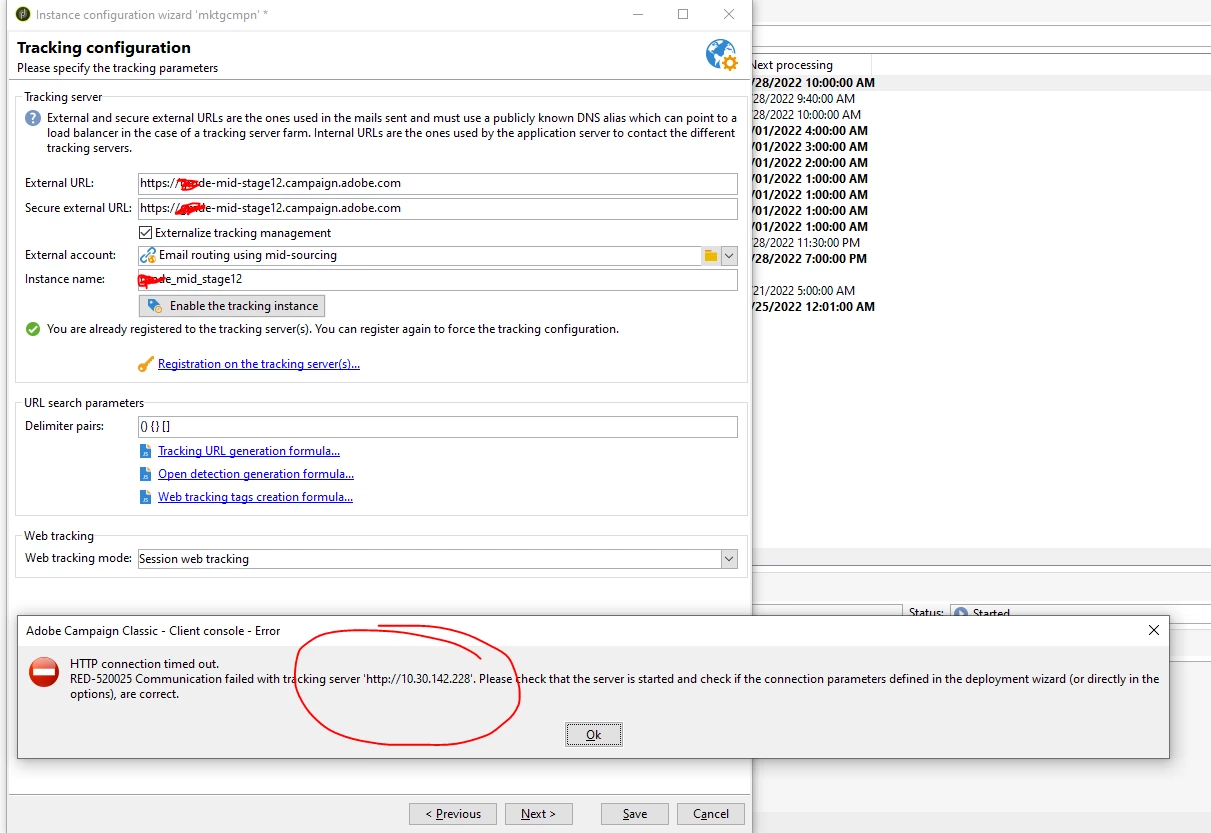 RED-520025 Communication failed with tracking server 'http://10.30.142.228. Please the that server is started and check if the connecation parameter defined in deployment wizard are correct.