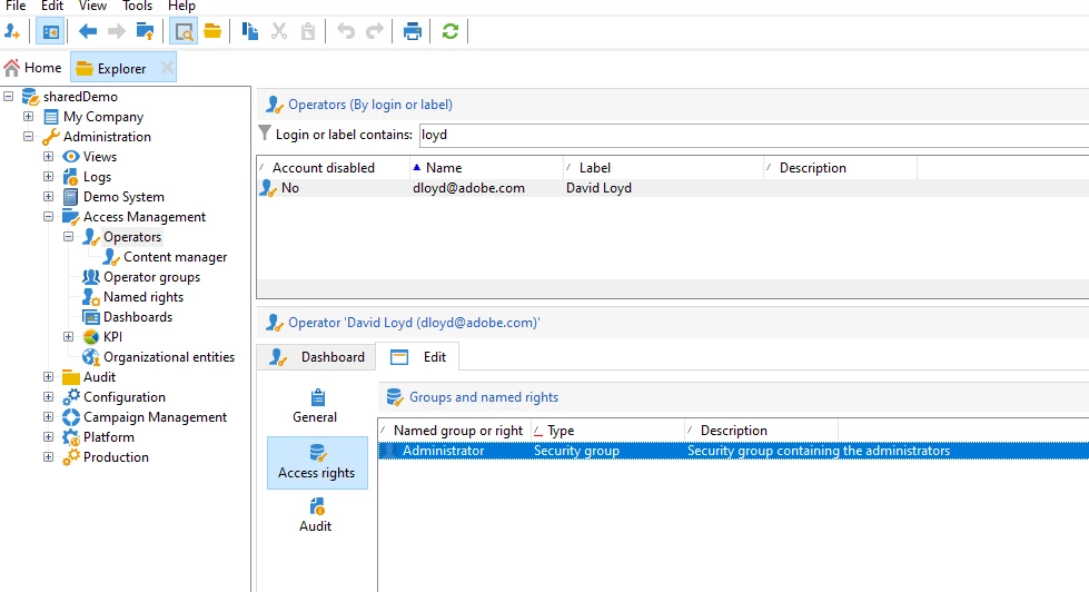 The operators in this group are in charge of managing deliveries: they enable access to the main resources required for creating and preparing deliveries (campaign typologies, delivery mappings, default templates, personalization blocks, etc.).