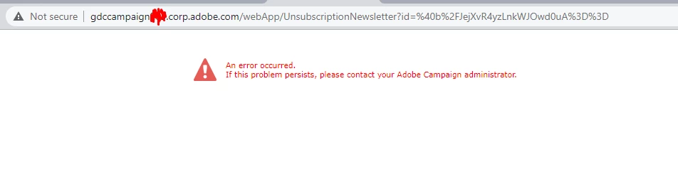 I using unsubscription webapp and using the public url in my personalization block (url?id=<......>). After sending the email delivery when i try to open the link then it is showing me this.