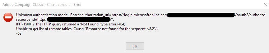 I am currently working on the connection between Adobe Campaign Classic and Microsoft Dynamics 365 CRM. After following the documentation and setting up the external account with the deployment type Web API (Certificate) I get the following error message after starting the configuration wizard: