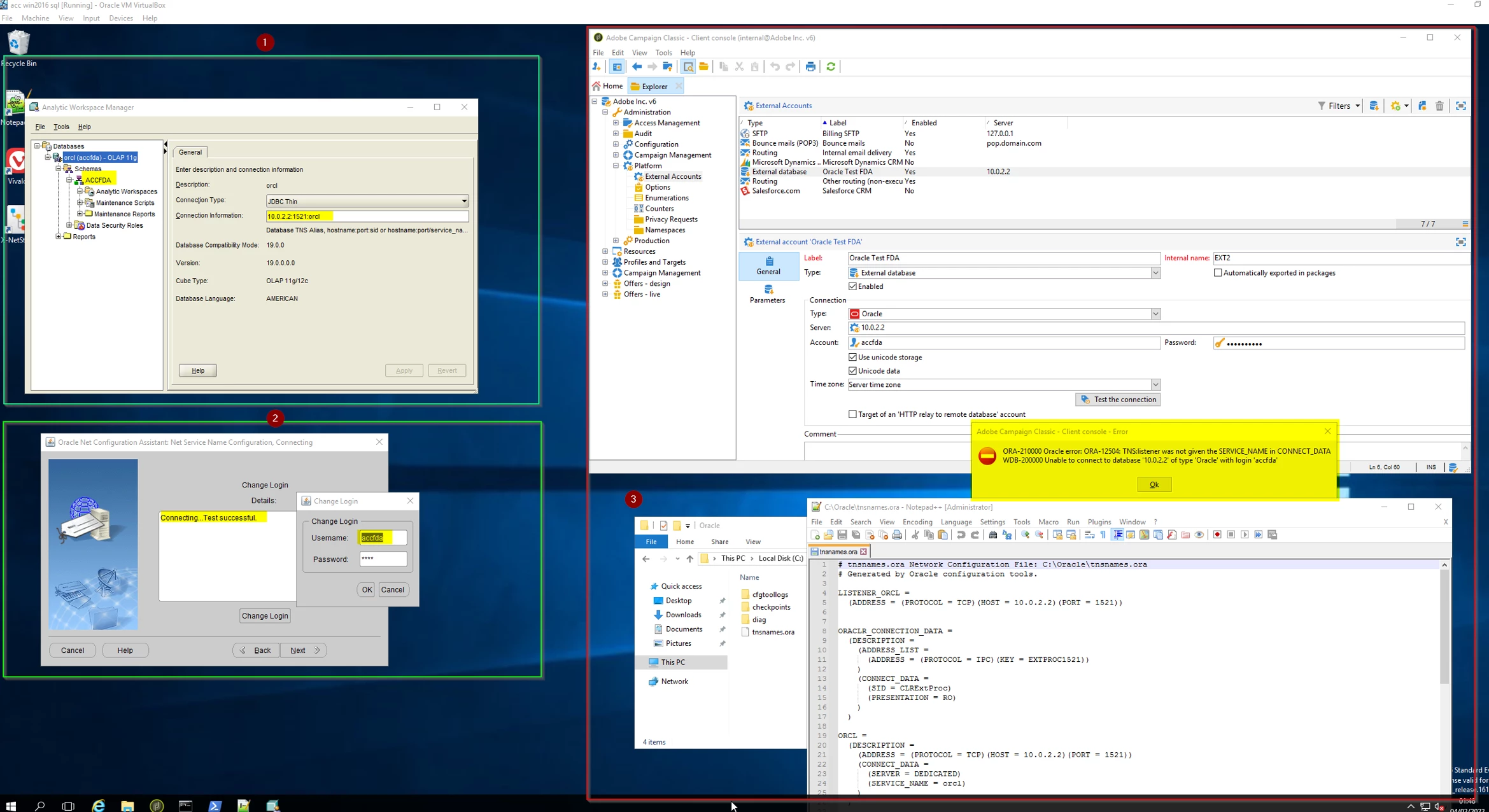 Error setting up FDA Oracle external account on v7.0.9346 Windows