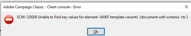 SCM 120008: unable to find key values for element 'xxx' (document with schema 'ctx')