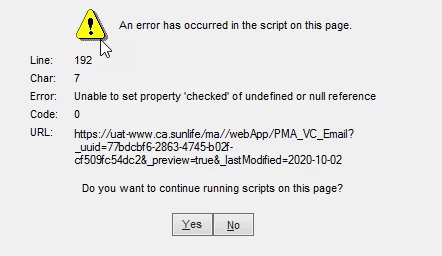 Error when prechecking checkbox