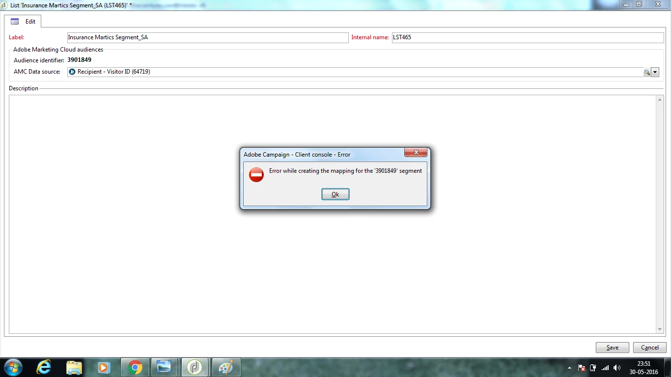Error while creating a shared audience in Adobe campaign