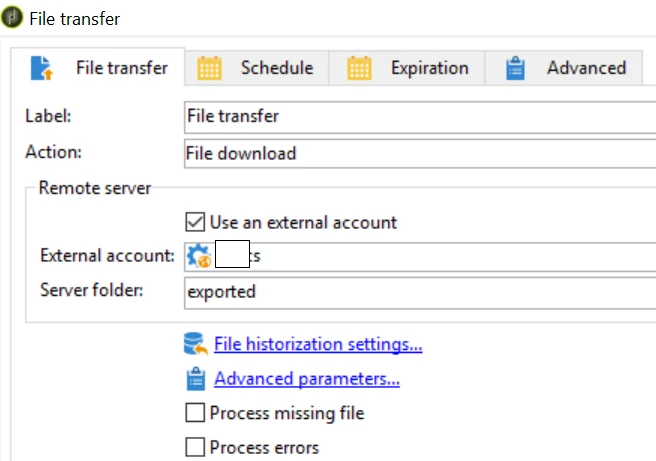 I have created the external account and configured File transfer activity as shown in below screenshot