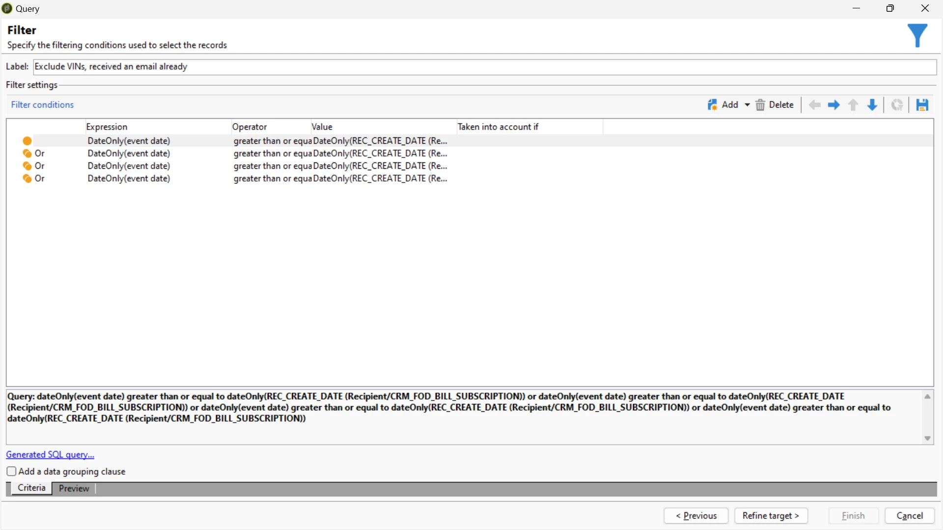 Exclude records based on the event date of Broadlog