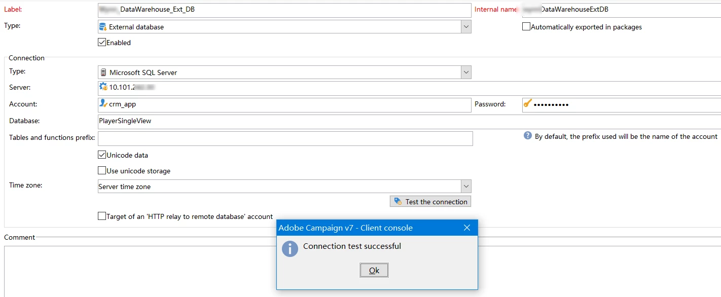 We created a external database account which is a Microsoft SQL server.
