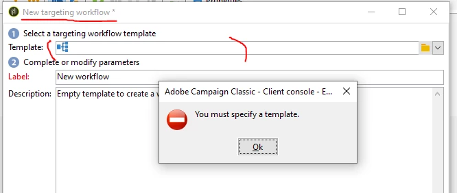 Selecting template is mandatory.