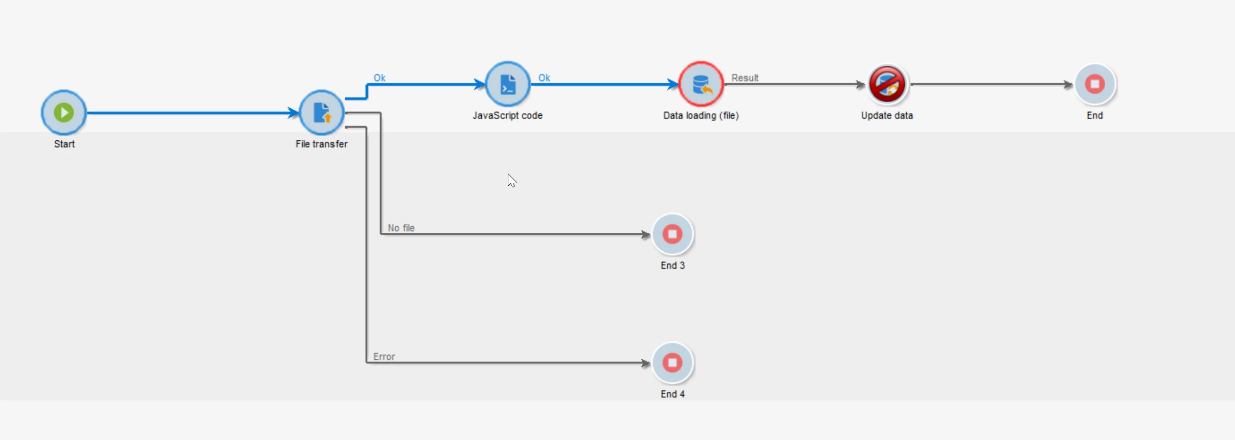 I'm using regular expression to find the present file: XXX_CENTRAL_DIF.csv.gz or XXX_TOP_DIF.csv.gz. File transfer should find any of this and then Data Loading should load the data so later an Update Activity can ingest it into the schema.