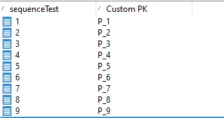 INSERT INTO CusSequenceTest (isequenceTest ) VALUES (0); --(defining the first 0 value for the primary key, hence the records now will have sequence as 1,2,3... )
