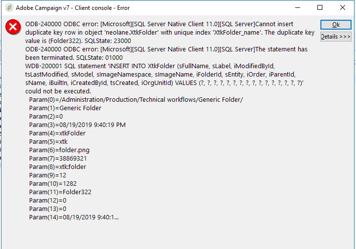 Whenever I am trying to create new folder in mya dobe campaign classic console, I am getting below error: