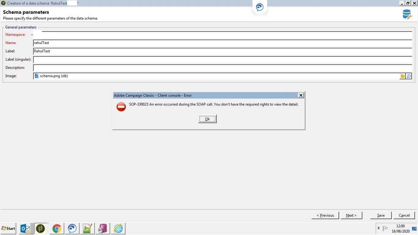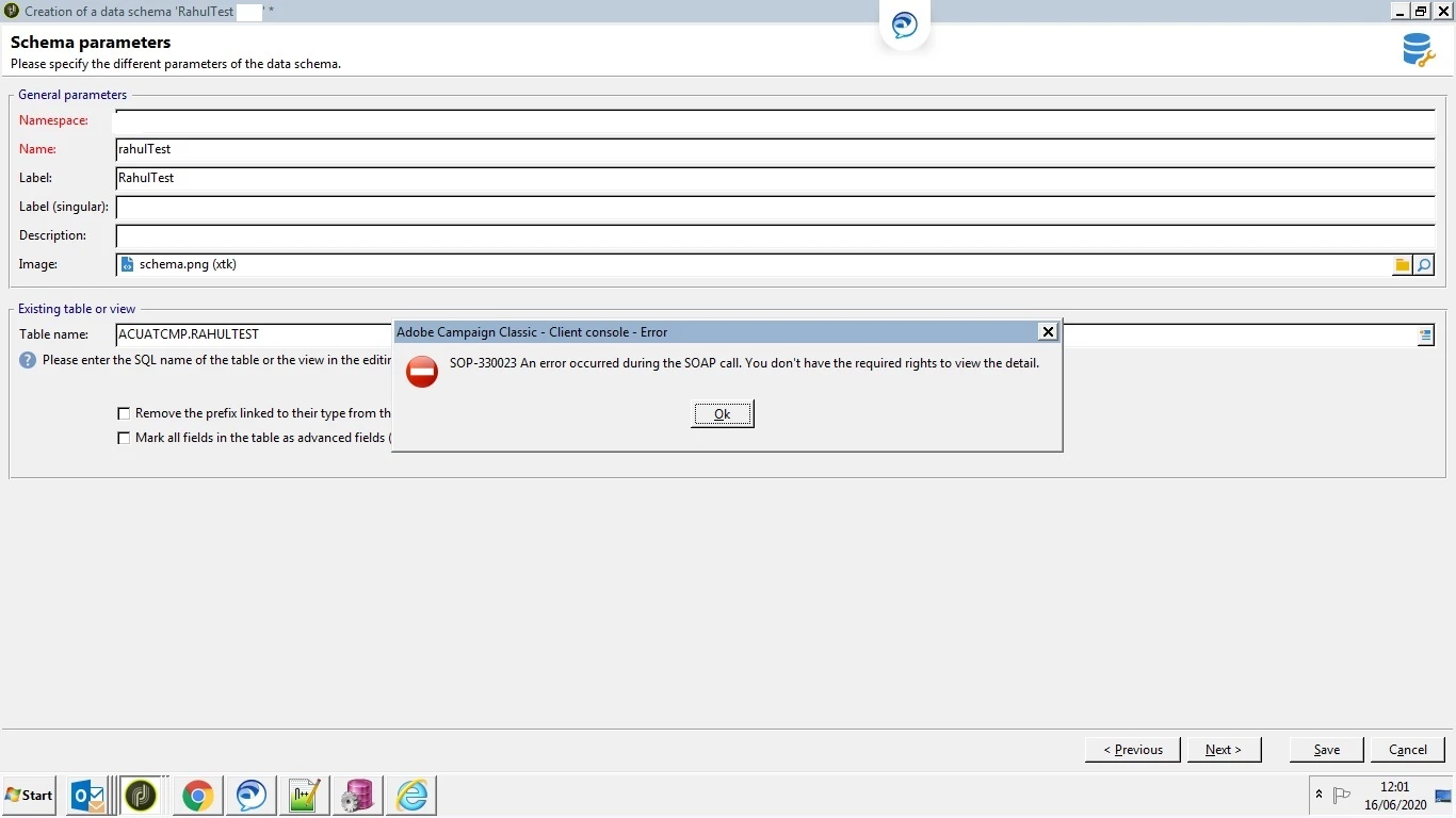 Getting SOAP call error while creating a data schema in Adobe Campaign Classic