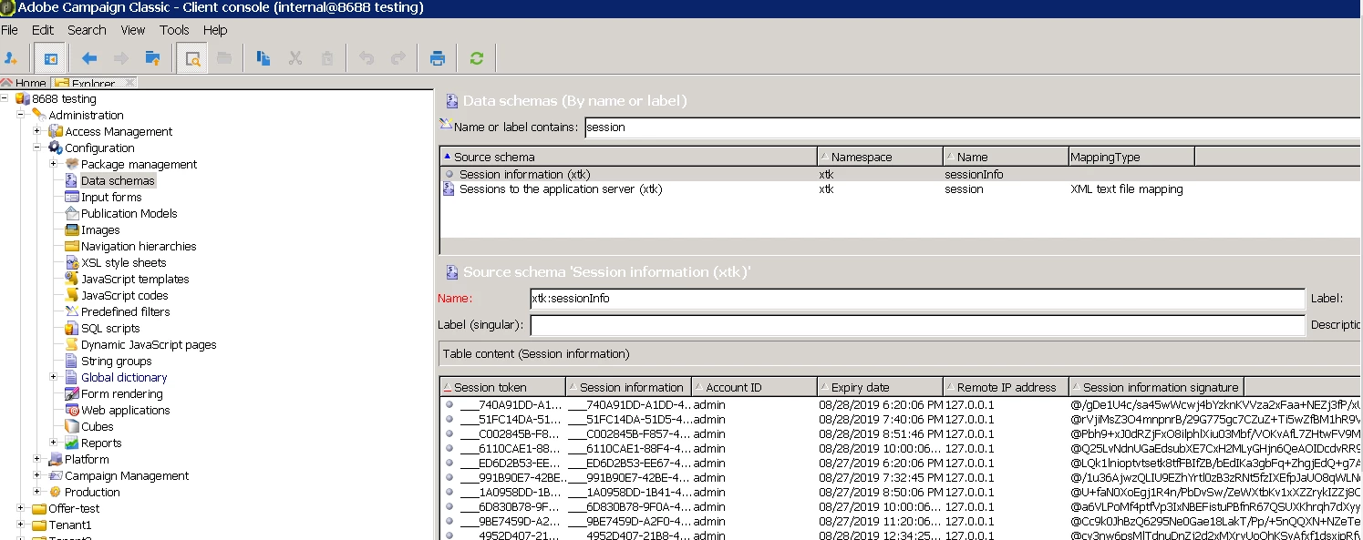 I can see the stored session information from the schema.