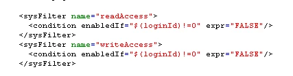 My sysfilter in schema definition for xtk:sessionInfo is :