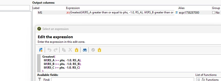 However, when I try to add this field in the "Add data" (or "Output columns") tab of the Enrichment, I am not sure what to put in the "Expression" field.