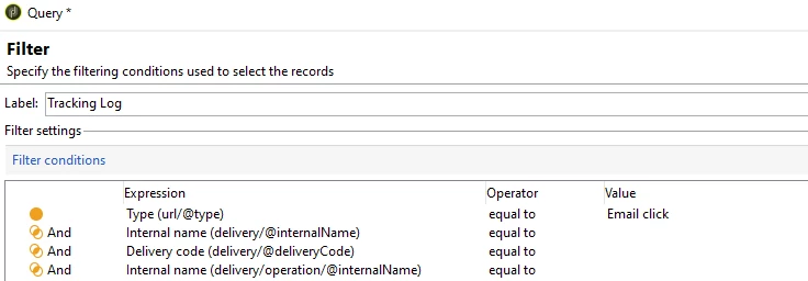 How do i write a query in workflow such that i get number of click that user has performed on the email sent via adobe campaign?