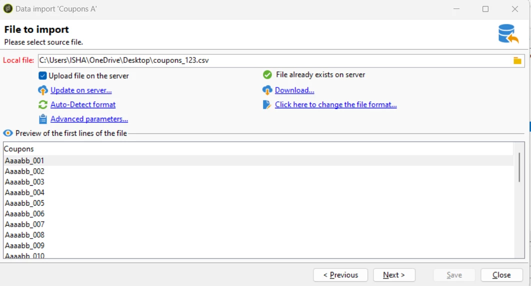 I have some offer codes like those below; they are unique (exp: 100 targeted customers, 100 unique coupons). I want to add these offer codes to delivery through a Java script. Is it possible to add these codes to delivery? Can you please help me with this?
