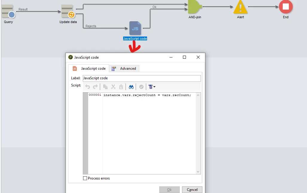 How to get update, insert and reject count in a single alert activity in a workflow?
