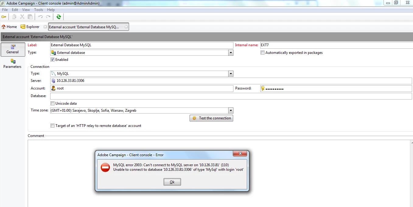 1. This error message appears when I try to connect to remote host, I worked on Windows 7. I set setting in Administration->Platform->External accounts and when I try to connect I get error message:
