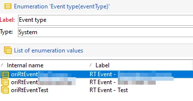 e.g. I have created a third RT Event - oriRtEventTest, but it doesn't show in the template drop down