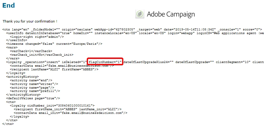 What am I looking for, when the customer check the checkbox for the condition and click on the confirmation button, is to store the first data (308406*** call "cinNumber") in some kind of list so I can use it in a workflow later to make an exclusion.