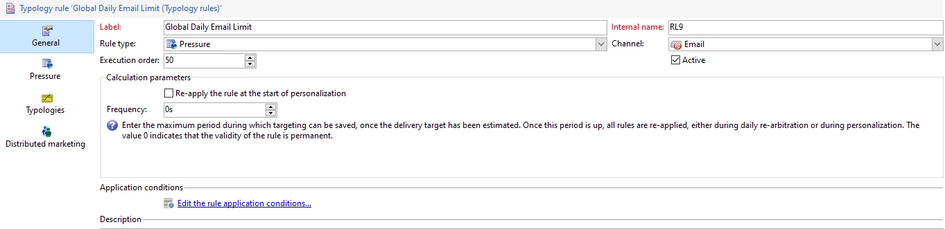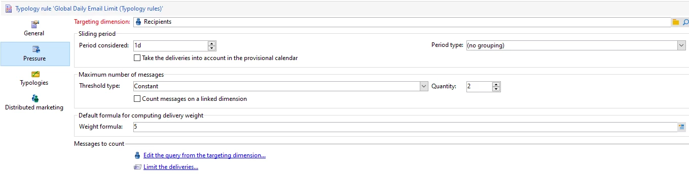 There are multiple ways to create Marketing Fatigue rules in adobe campaign. One of them in pressure typology.