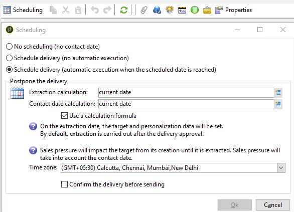 For this, the scheduling must be configured in the channel delivery template as below.
