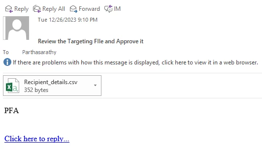 If your use case is to send target recipient counts and other details in a file (generated in Data extraction activity) to the operator, by default in approval activity we don't have an option to add an attachment.
