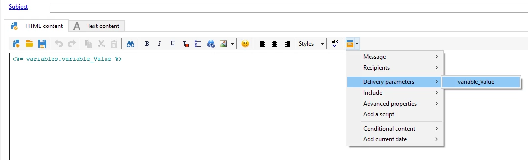 Also, I want to use the variable value in email delivery.