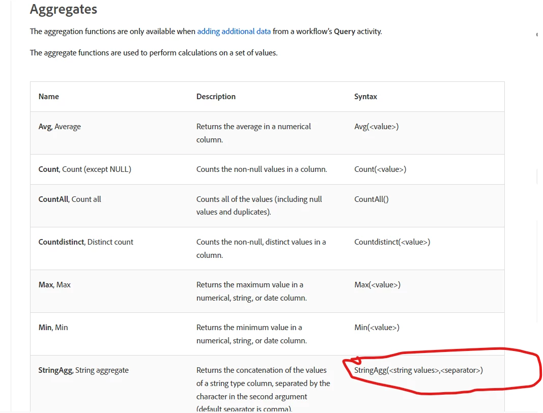 I am using StringAgg(<value>,";") but is giving error when run campaign. Anybody tell me correct syntax.