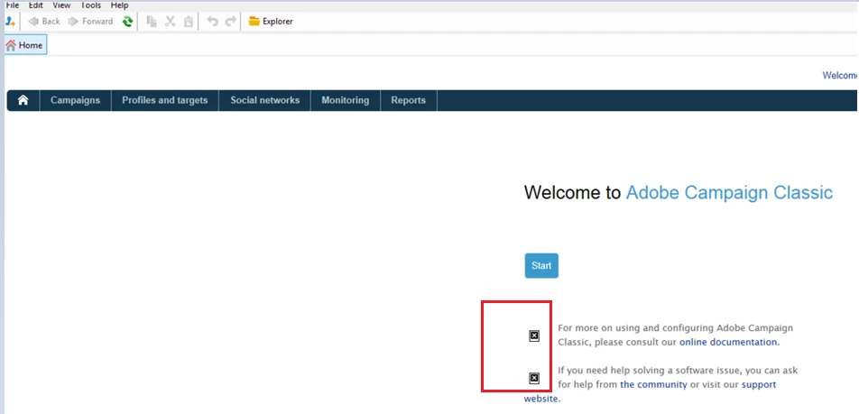 The images in home page of Adobe campaign classic client console were seen before the upgrade and these