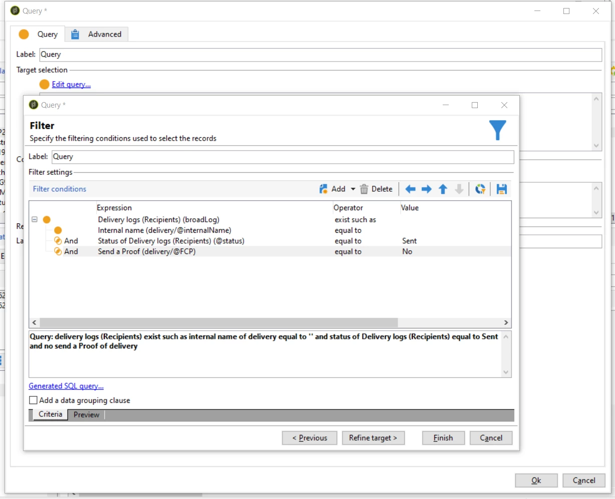 Note: I've added that the "Status = Sent" so removes any quarantined records;
